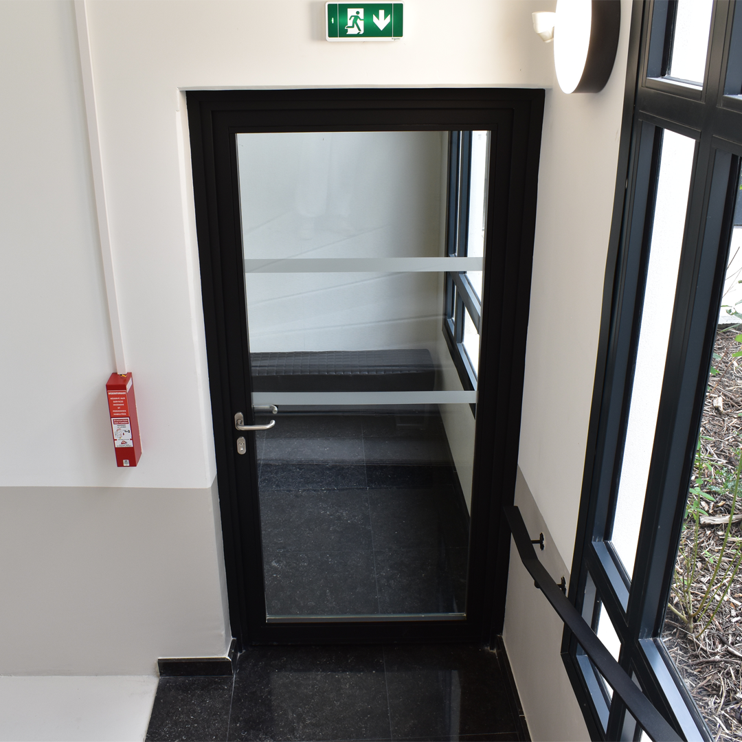 En tant que fabricant de porte coupe feu acier nous garantissons un bloc porte vitré coupe-feu 1 heure qui bloque la propagation la propagation des gaz de combustion et des fumées ainsi que de la chaleur grâce à la technicité avancée de nos profilés. Ils sont réalisés en acier magnélis ép. 2mm et sont équipés de deux pivots réglables à billes par vantail.